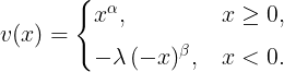 - v : value(価値) プロスペクト理論側の「人間の満足度メーター」。