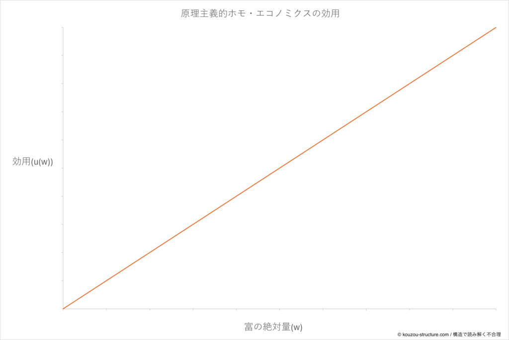 u(w) = w(u:効用、w:お金の量)